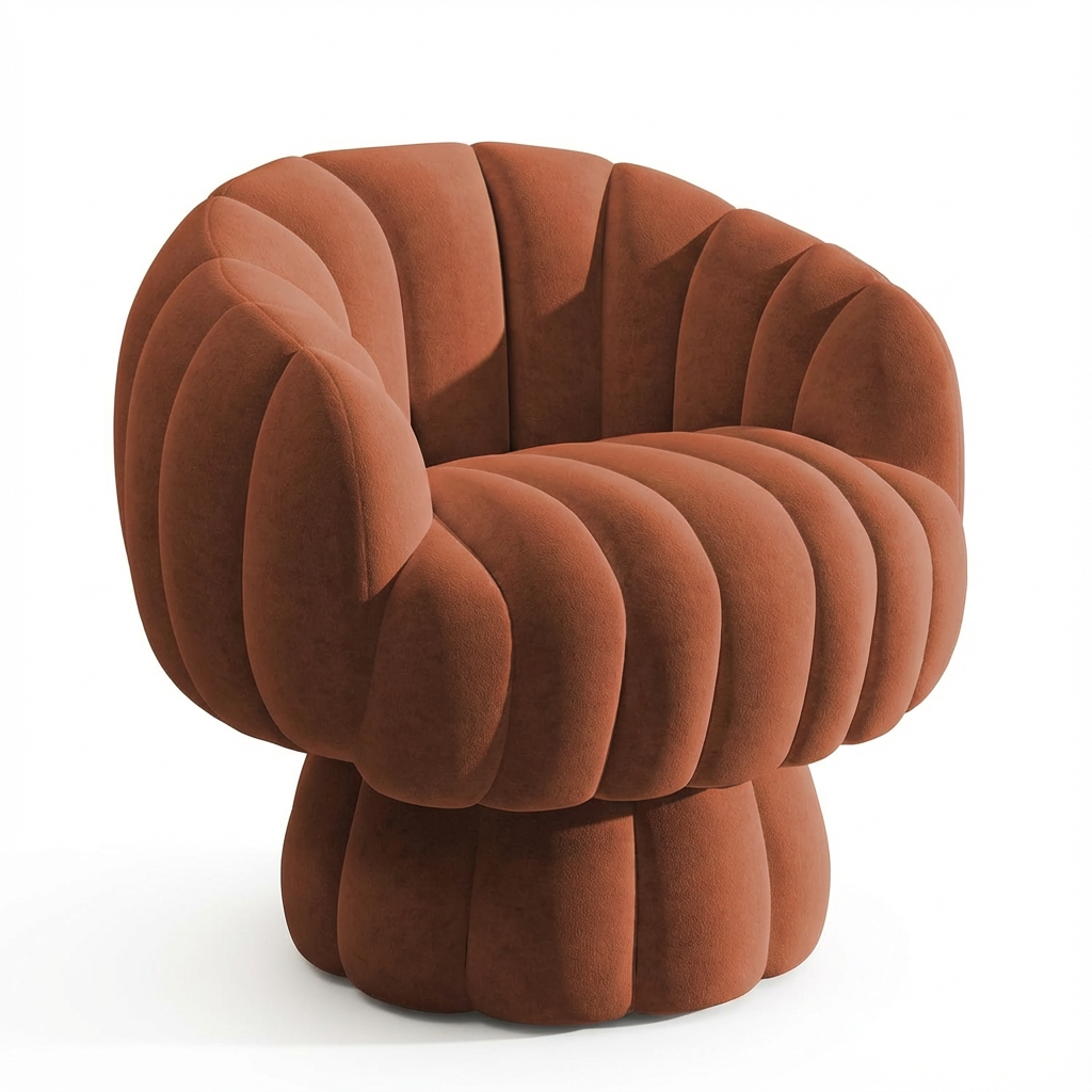 Mid Century Modern 360° Barrel Swivel Accent Sofa Chair – Fluffy Velvet Lounge Pumpkin Armchair (Burnt Orange)