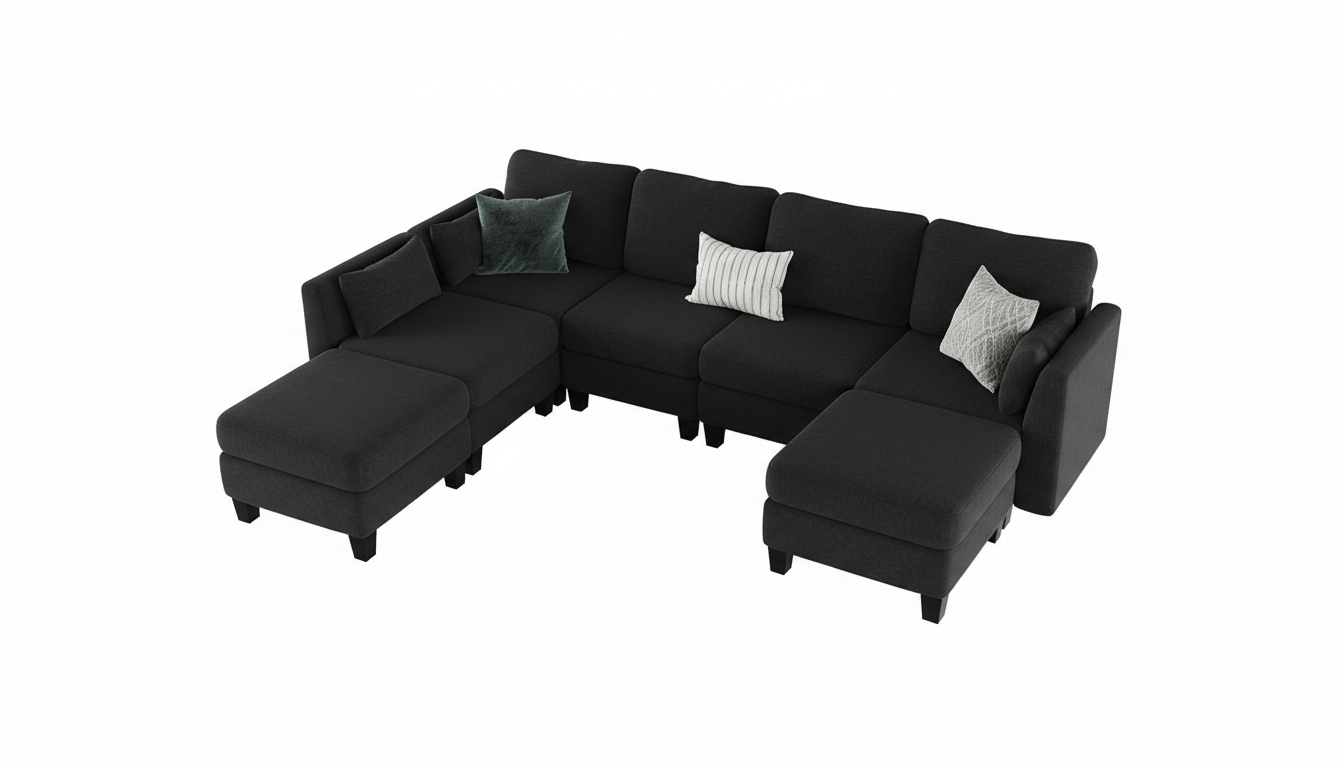 L-shaped black sectional sofas like the Korser and HONBAY Convertible work best in smaller to medium rooms, typically seating 3-4 people comfortably while fitting against walls efficiently. They create cozy conversation areas without overwhelming space. U-shaped configurations like the GOSUHI, Ihanherry, and ONEMMLION models suit larger rooms where the sofa becomes a central focal point, seating 5-6 people and creating intimate gathering spaces. U-shaped designs work wonderfully in open-concept layouts, helping define living areas within larger spaces. Consider traffic flow—L-shaped sofas allow easier movement around rooms while U-shaped designs may require dedicated zones. L-shaped options offer more placement flexibility, while U-shaped models make bold statements. Your room size, household size, and entertaining frequency should guide this decision.
